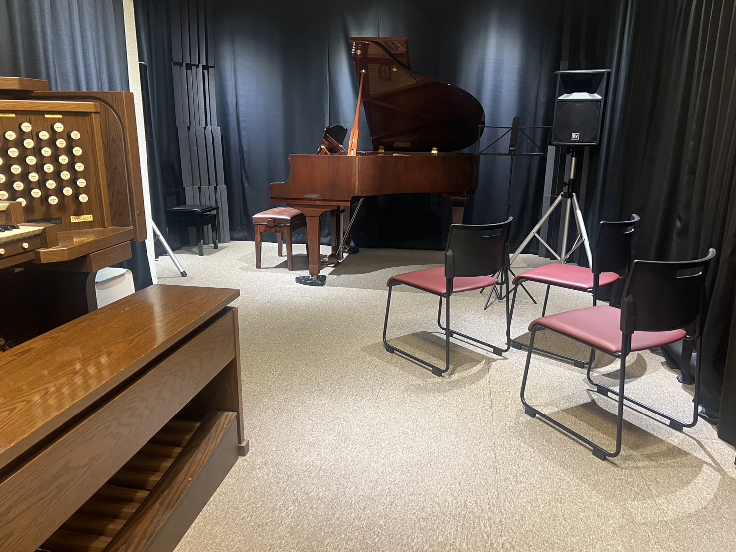 | 説明 | 温かみのあるサウンドが特色の70年代スタインウェイを設置。 アップライトピアノもあり、2台での練習も可能です。 又、かんたん録音セット利用により演奏を録音することもできます。 |